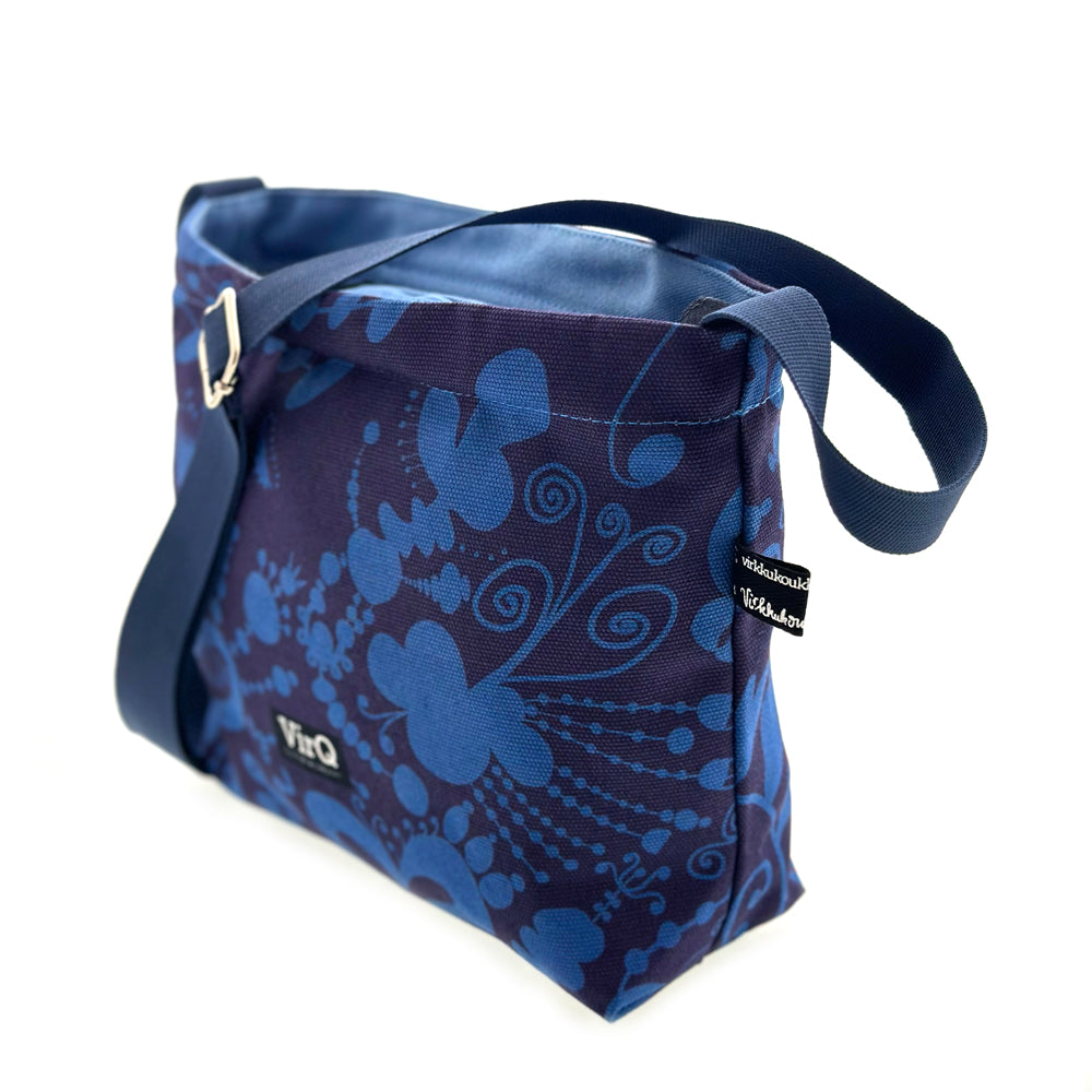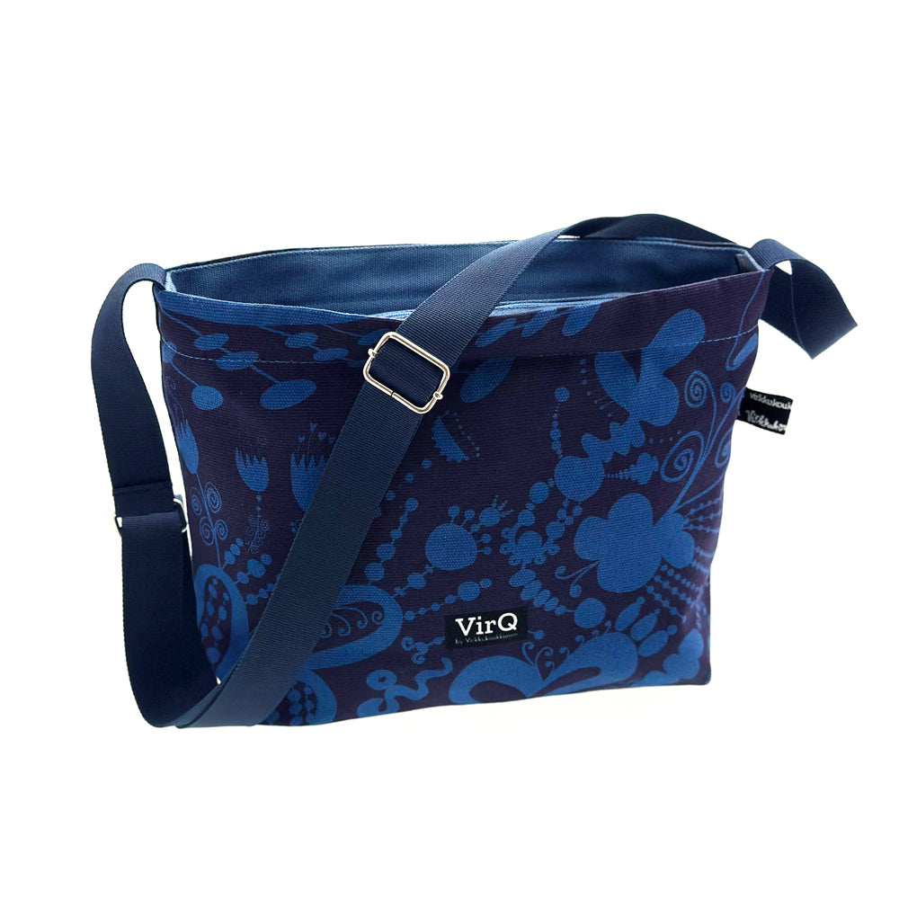 Suunnittelussa ja valmistuksessa on panostettu huolelliseen laatuun. VirQ:n suunnittelema kangas on painettu ammattimaisesti Suomessa ja laukku on viimeistelty taitavasti Virossa. Pidä Olkasi siistinä ja kauniina pidempään käsittelemällä se tekstiilisuojasuihkeella – näin laukku säilyy siistinä ja puhtaana päivästä toiseen.