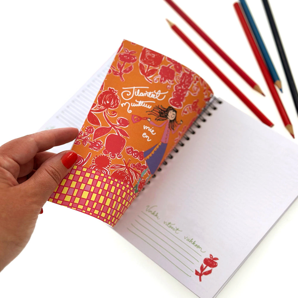 Viikkopäivyrimme on täynnä veikeää ja värikästä kuvitusta, joka vie sinut seikkailuun päivä kerrallaan. Jokaiselle kuukaudelle on varattu kokonainen sivu, joka tarjoaa tilaa mietteillesi ja omille merkinnöillesi. Mainio taskukalenteri sisältää myös päivälistan, nimipäiviä ja liputuspäiviä, unohtamatta piristäviä lausahduksia.