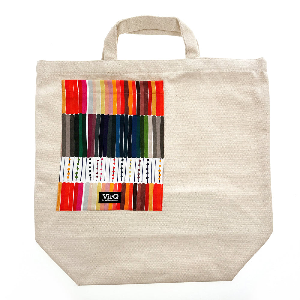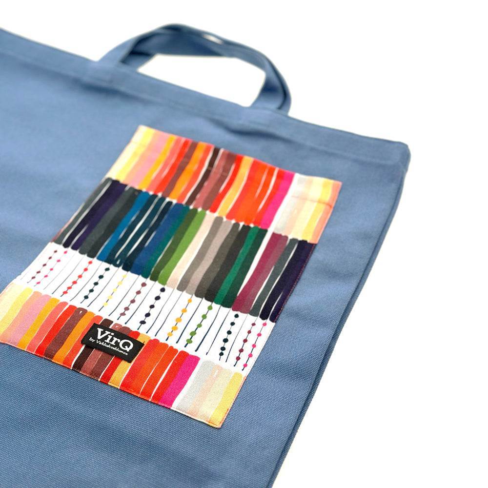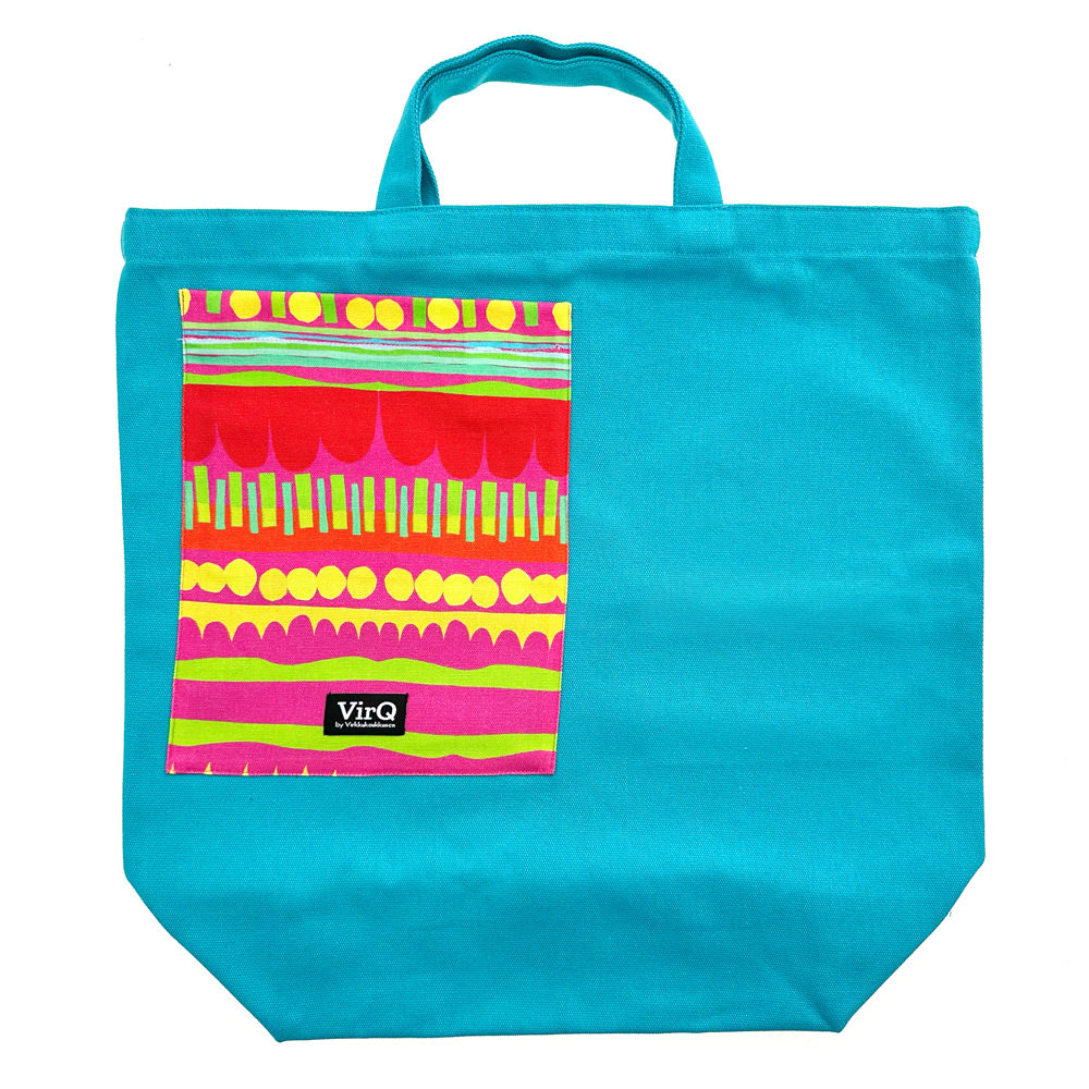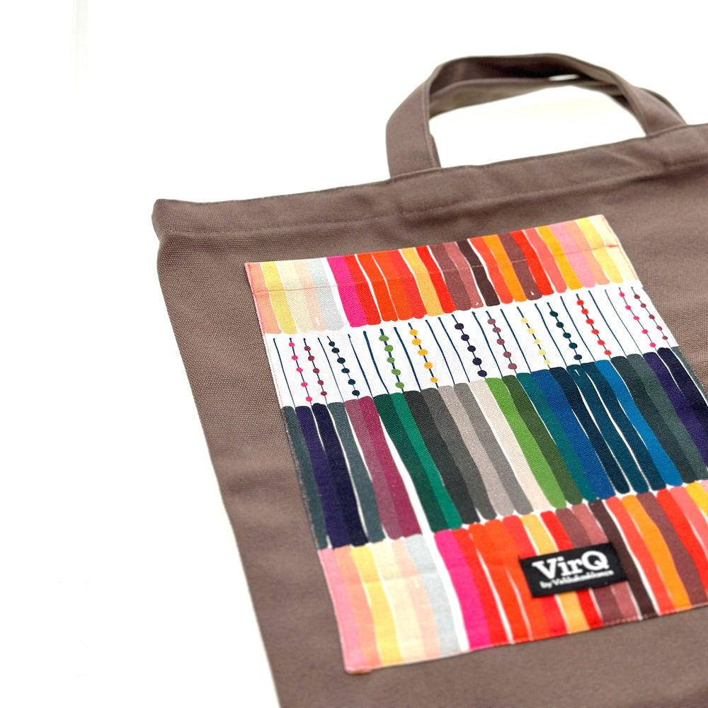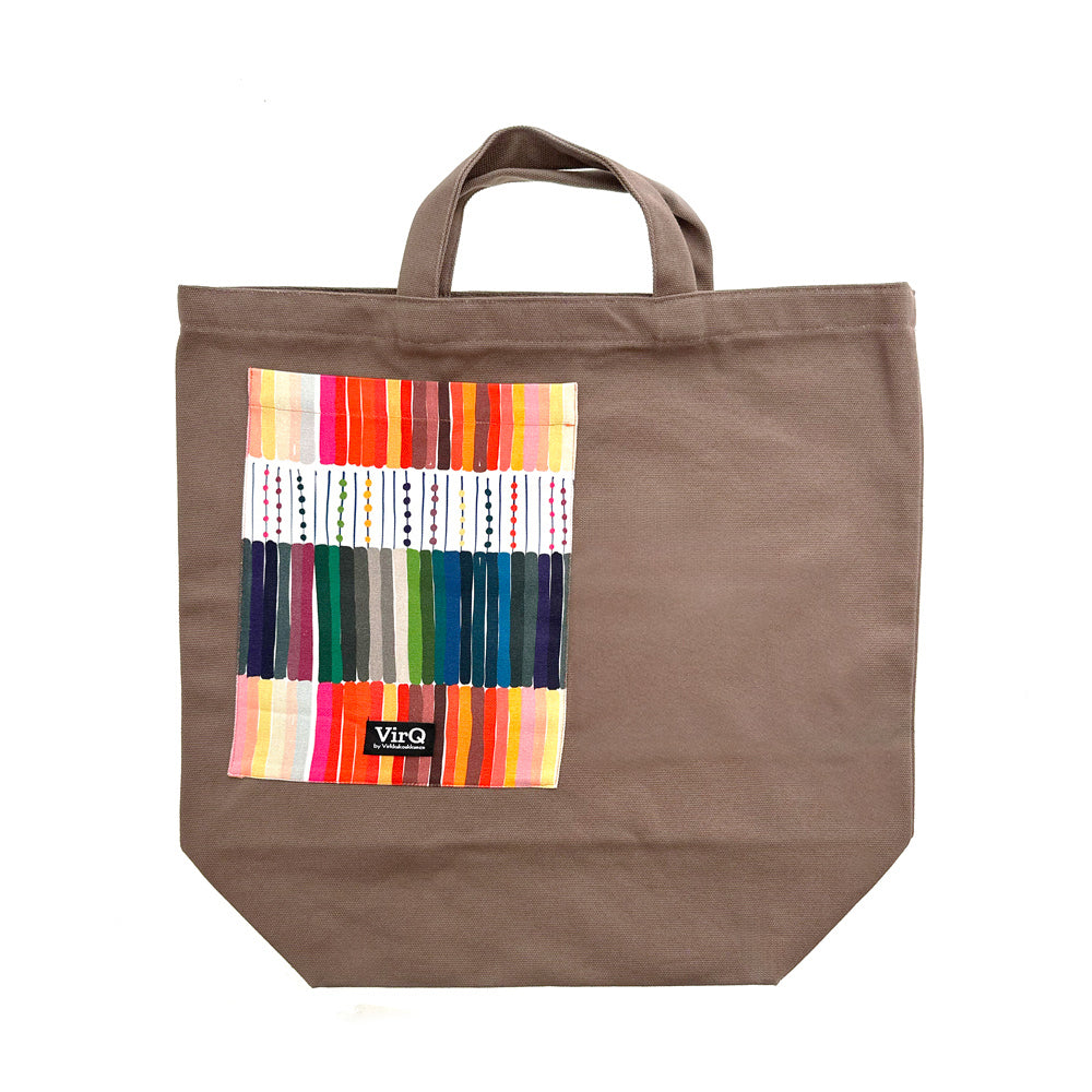 Markiisitar kauppakassi yhdistää vahvan canvaksen moderniin VirQ-designiin. Kassiin on lisätty kauniisti ommeltu tasku ylijäämäkankaasta, joka ei ainoastaan korista kassin ulkonäköä vaan on myös käytännöllinen: täydellinen lompakon, puhelimen tai silmälasien säilytykseen.