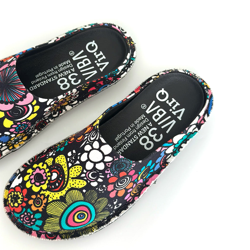 VirQ:n tunnettu värikäs ja mukavuutta korostava tyyli jatkuu myös kenkämalliston osalta. Mukavuus on keskeisessä roolissa, mutta samalla tuodaan esille esille VirQ:n tunnetuksi tuomat, huomiota herättävät kuosit. VIBAe osoittautui täydelliseksi kumppaniksi tähän tehtävään. VIBAen brändi, tyyli ja laatutietoisuus resonoivat ja lopputuloksena syntyivät ainutlaatuiset kengät, jotka vastaavat kaikkiin yhteistyökumppanin toiveisiin.