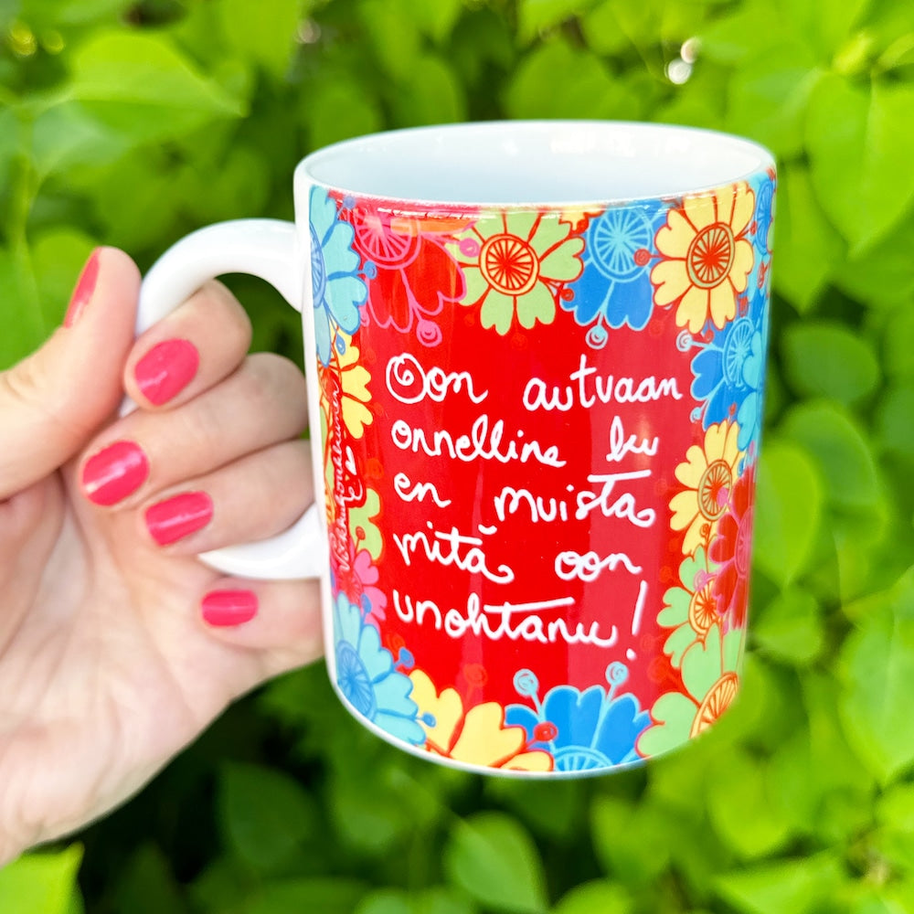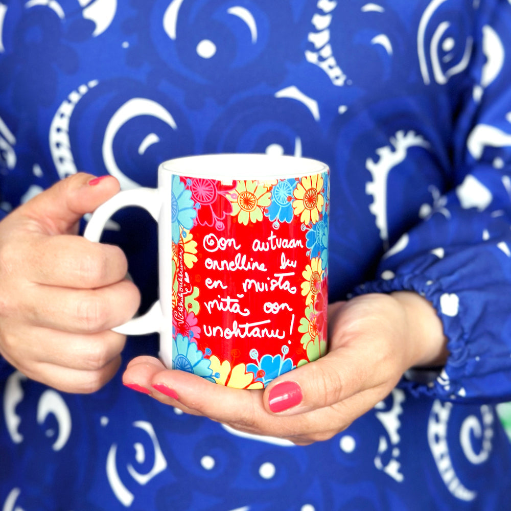 Nauti kahvisi ja teesi hauskasta VirQ by Virkkukoukkusen suunnittelemasta mukista ❤️ Värikäs muki piristää päivääsi kotona, eikä taatusti häviä muiden mukien joukkoon työpaikallakaan!