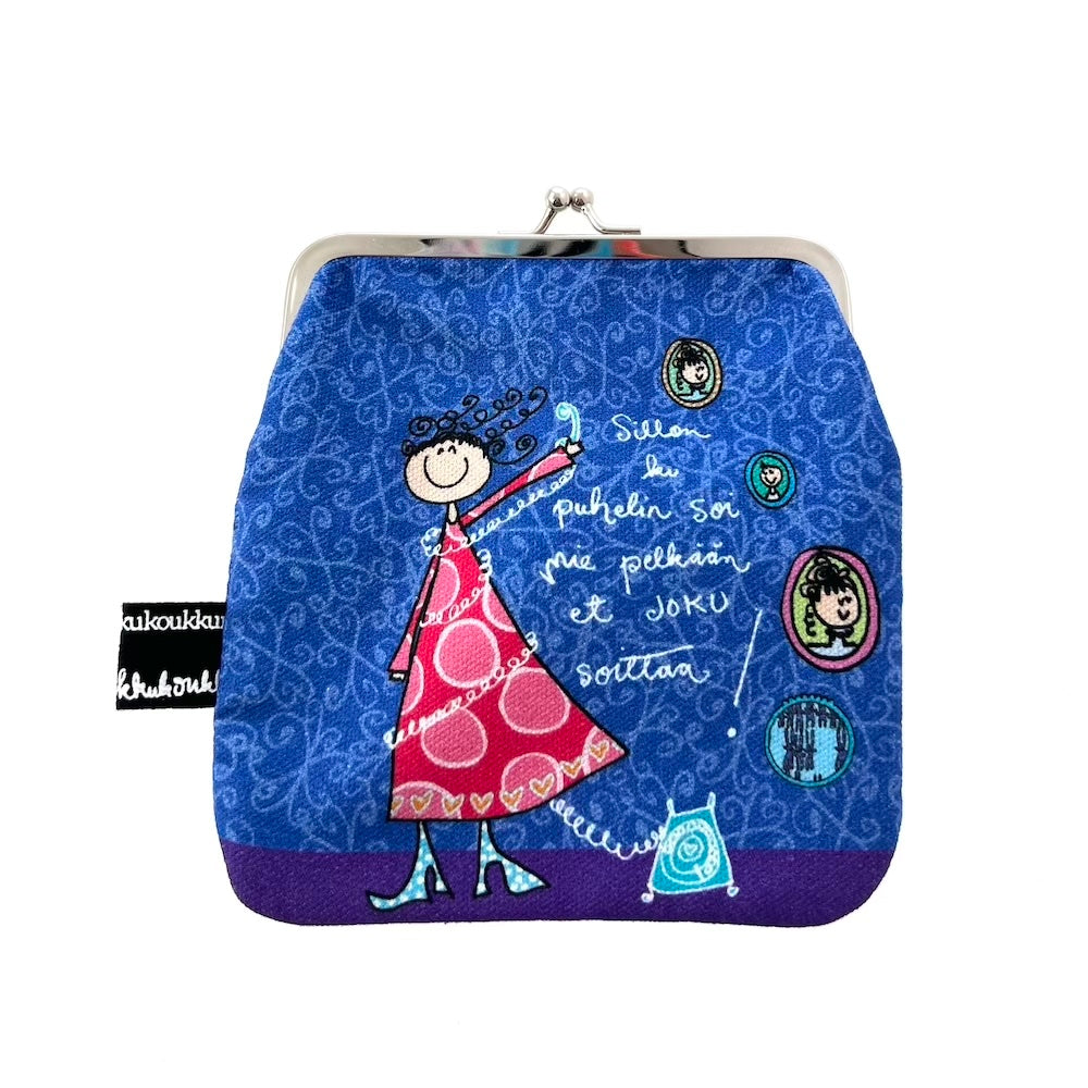 Pussukka on oiva valinta rahoille, korteille, meikkitarvikkeille, nesessääreille tai pienille aarteille. Metallinen napsahtava sulku pitää tavarat turvassa ja laadukas 100% puuvillakangas takaa kestävyyden. Vuorikankaan kuosi voi vaihdella, tuoden pussukkaasi oman persoonallisuutensa.