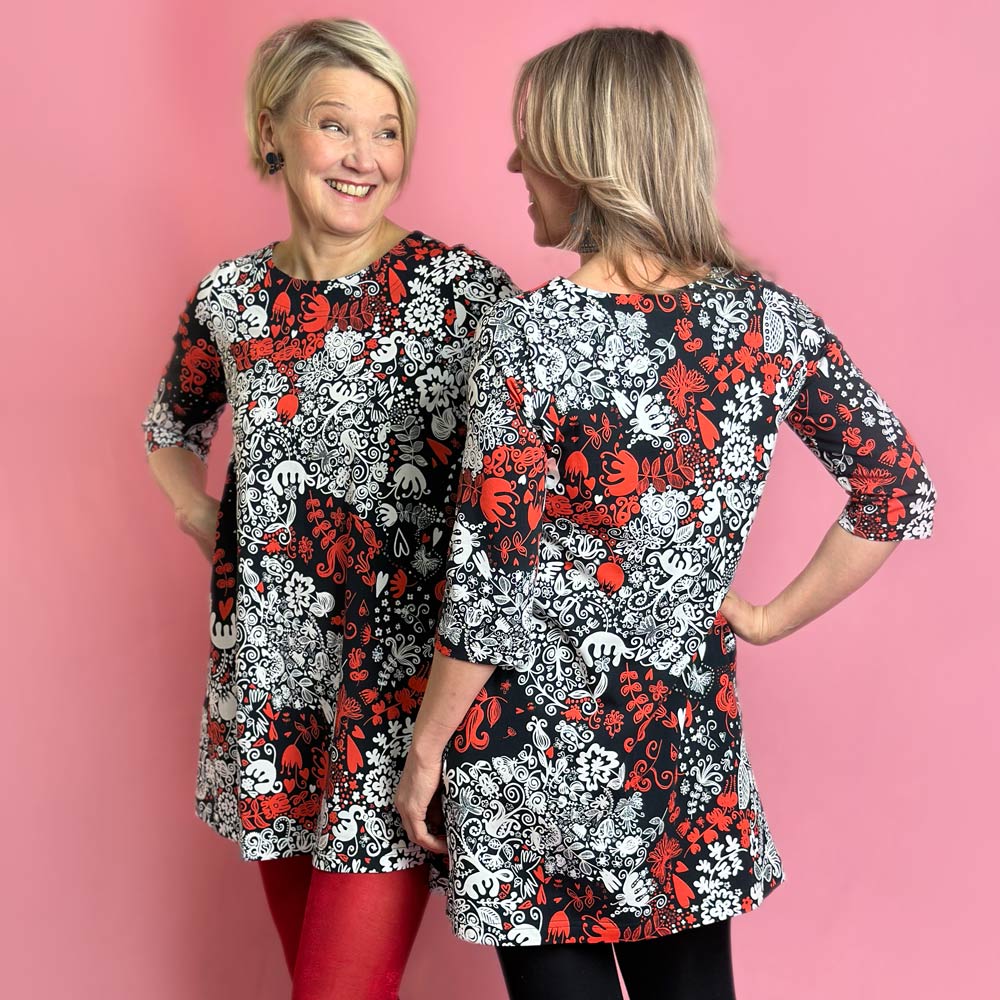 Arjen pelastaja on laadukas trikootunika ja juhliin voit pukea yllesi ylellisen puuvillasatiinisen ihanuuden. Löydä energiaa päivääsi hurmaavasta Suomessa valmistetusta tunikasta ja pukeudu sinuksi kaiken kokoisena!
