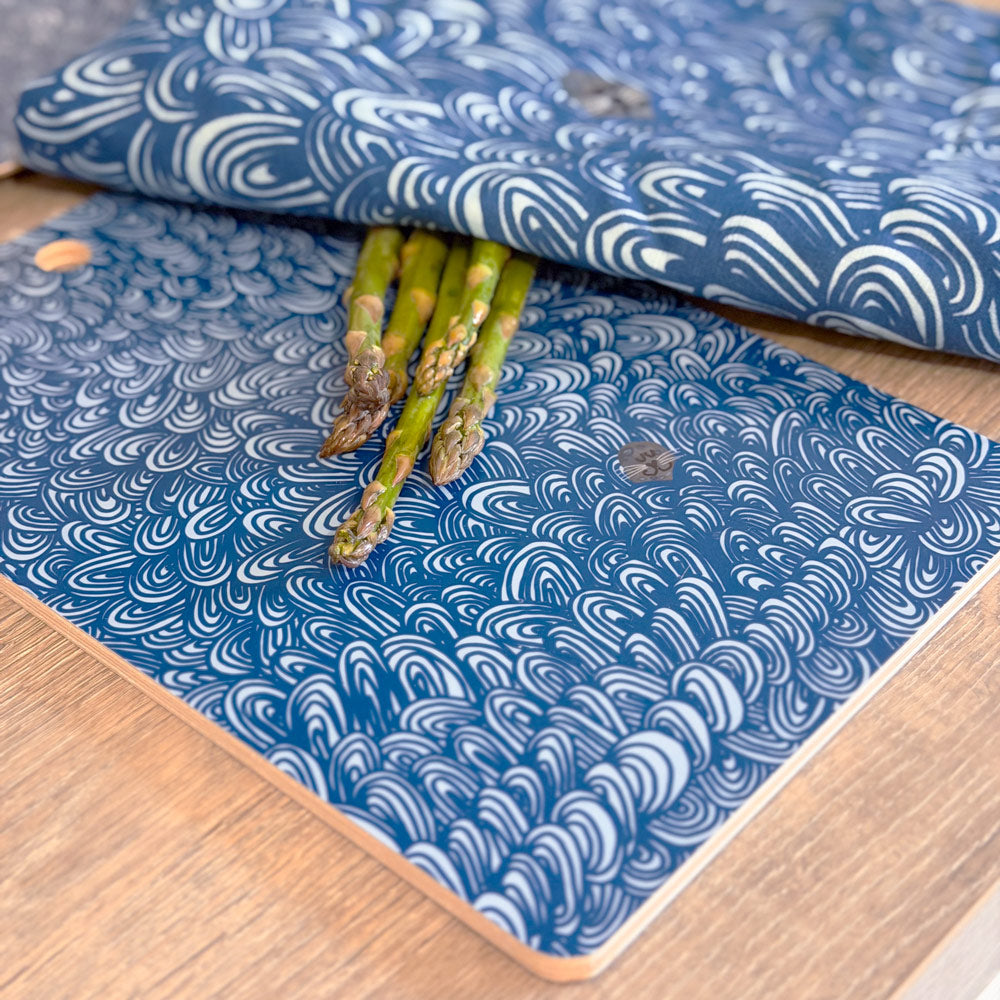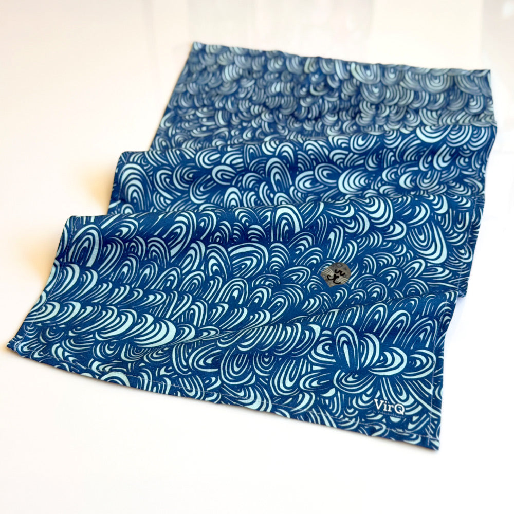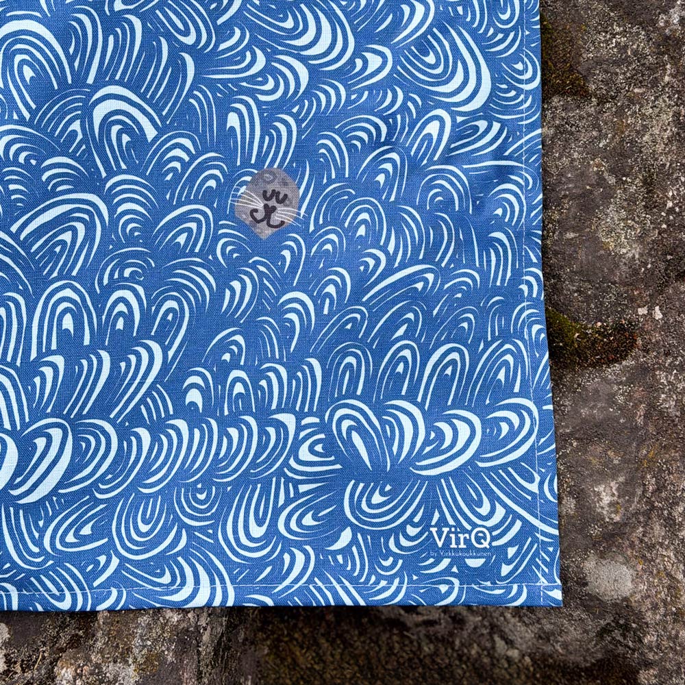 Tässä pyyhkeessä loistaa Saimaa-kuosi, eläväinen sininen aaltomainen printti, jossa tarkkasilmäinen voi bongata myös suloisen norpan! Kuosi tuo mieleen Saimaan kauniit vedet ja rauhoittavan tunnelman.