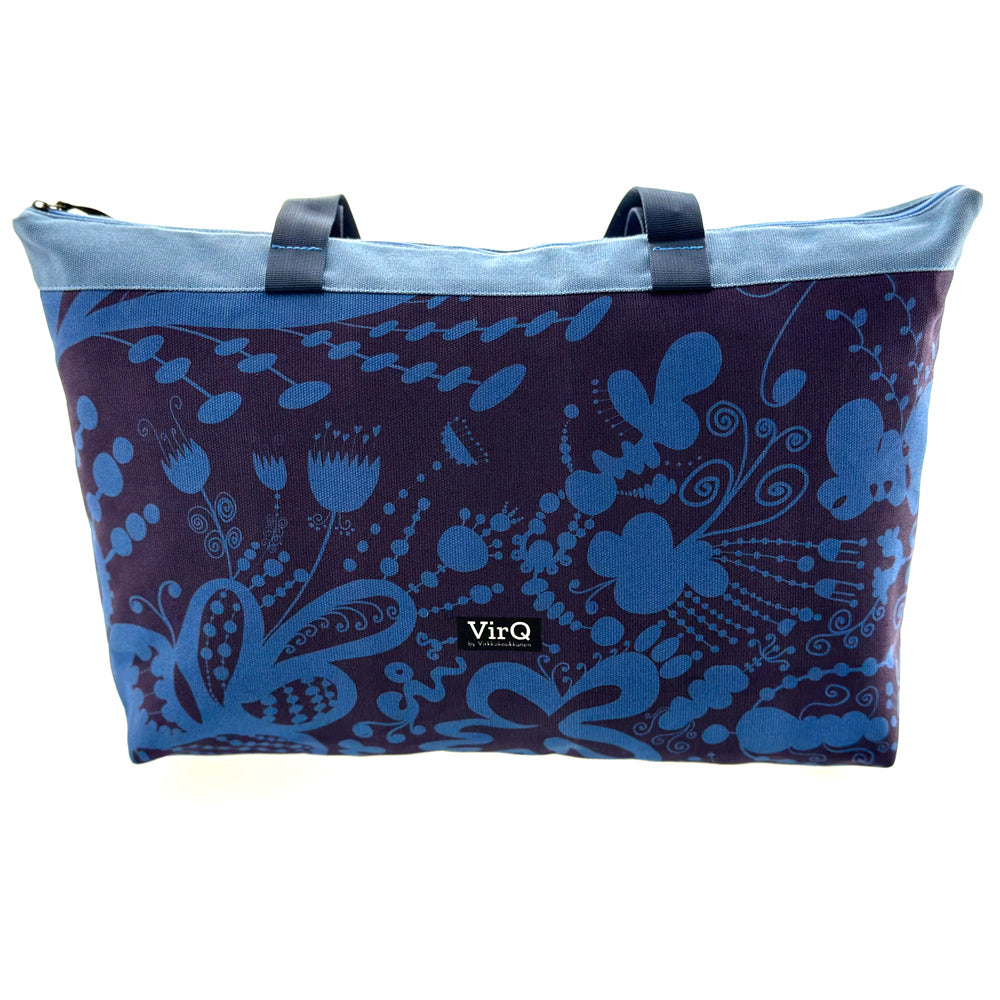 VirQ:n suunnittelema Reilu-olkalaukku on valmistettu napakasta canvas-kankaasta, joka kestää päivittäistä käyttöä. Vetoketjullinen sisätasku pitää pienet tavarat järjestyksessä ja turvassa. Laukun valmistuksessa on panostettu laatuun: kangas on painettu ammattitaidolla Suomessa ja laukku ommeltu huolellisesti Virossa.