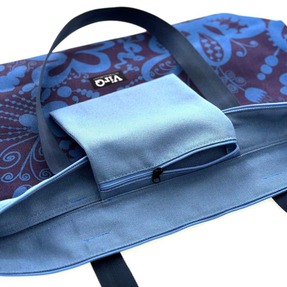 - Sisällä vetoketjullinen tasku 17 x 17 cm