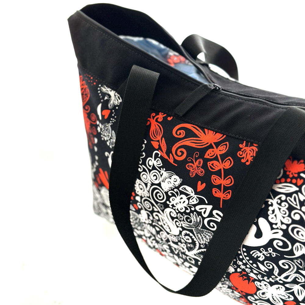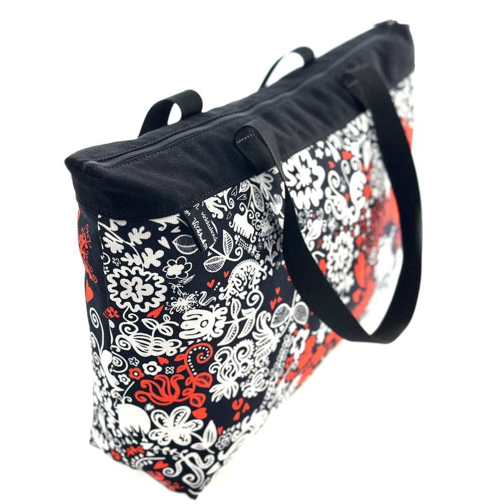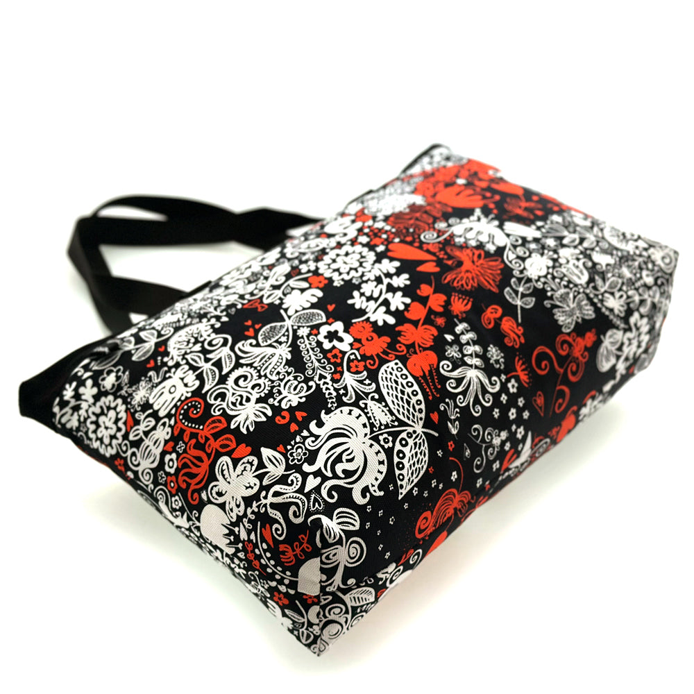 Paratiisi-kuosi on upea mustapohjainen design, jossa valkoisilla ja punaisilla kuvioilla kerrotaan tarinoita unelmien maailmasta. Eloisat kukat, linnut ja sydämet luovat harmonisen, hienostuneesti rytmitetyn kokonaisuuden, jossa tiiviit ja väljät kuviot antavat kuosille eloisan syvyyden. Tämä kuosi kutsuu tutkijan lumoutumaan sen kiehtovasta ja jatkuvasti muuttuvasta maisemasta.