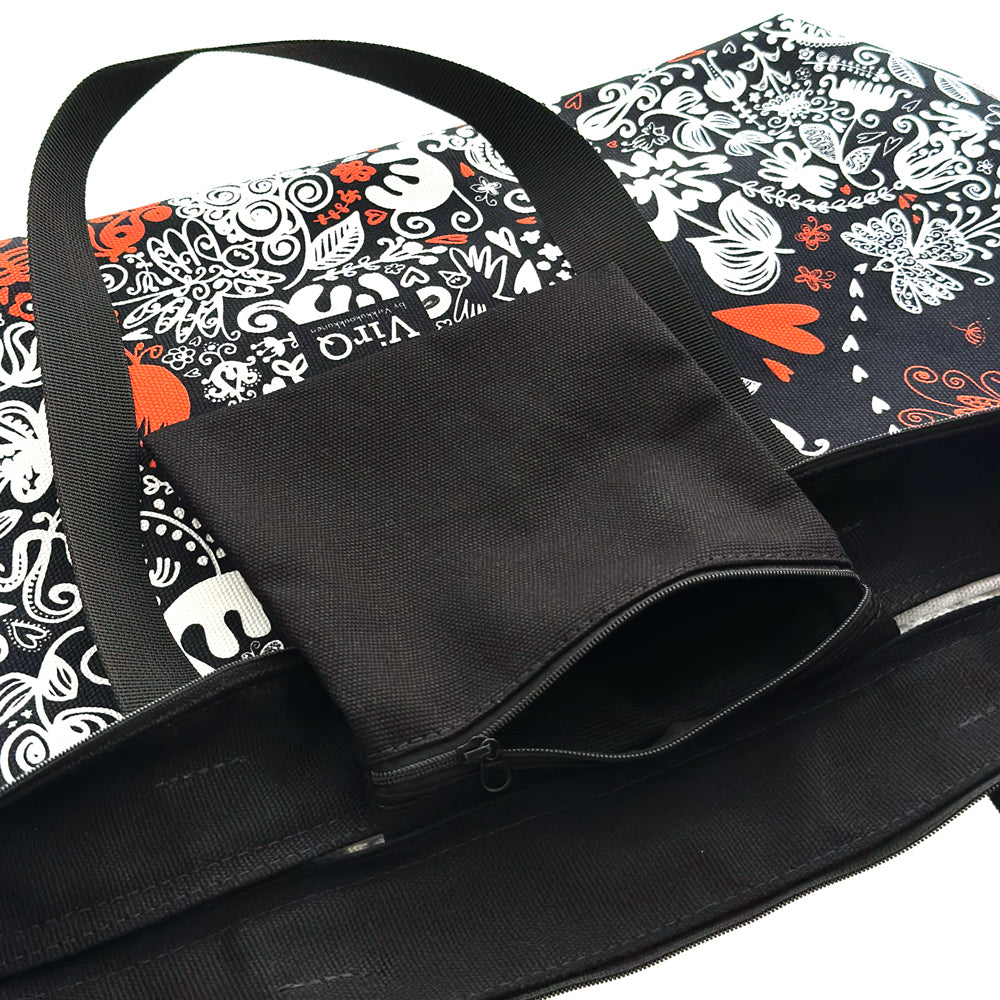 - Sisällä vetoketjullinen tasku 17 x 17 cm
