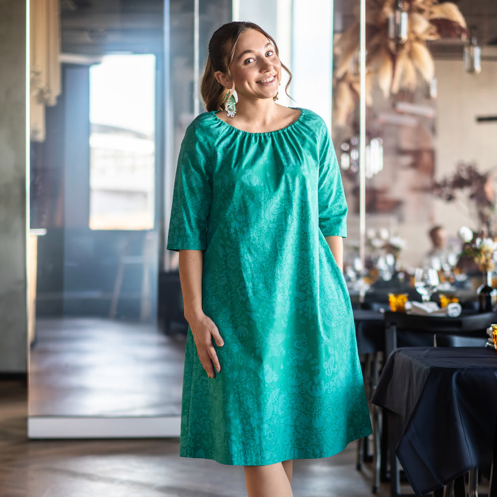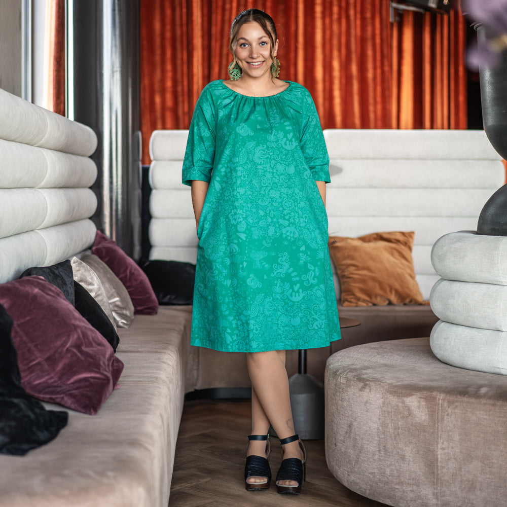 VirQ Jazz – viehkeä vihreä mekko puuvillapopliinista